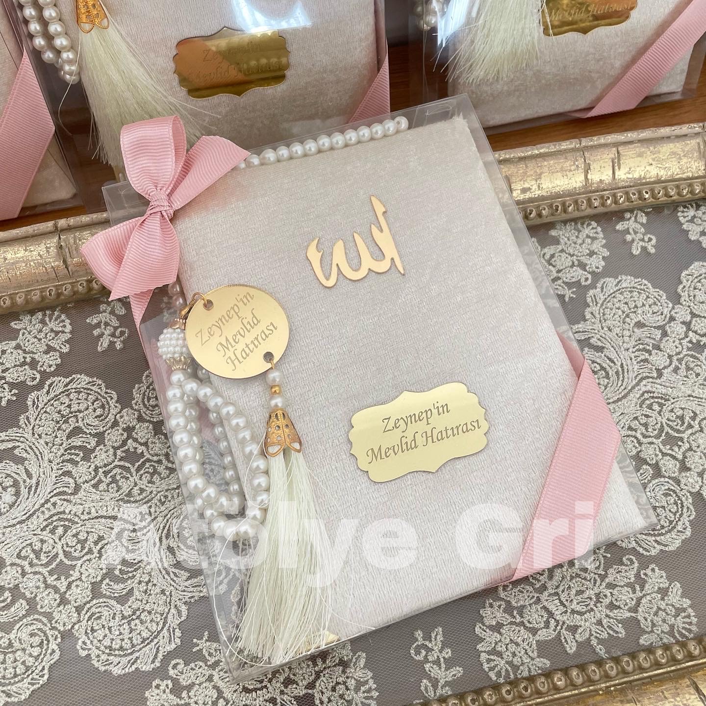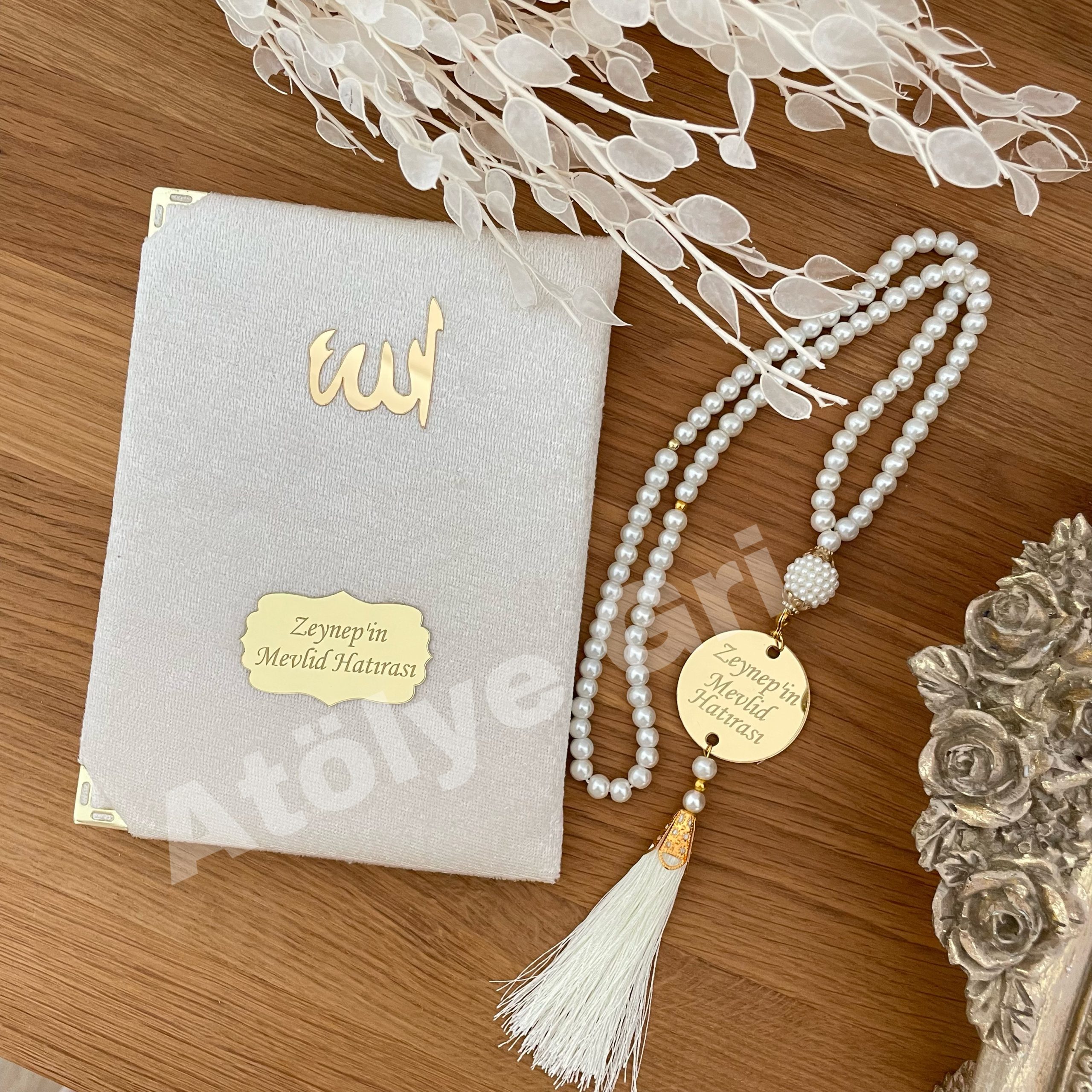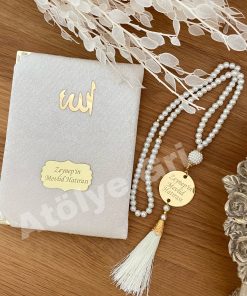 İnci Tesbi ve Gri Renkli Kadife Yasin Kitabı Seti – Mevlüt Hediyelikleri
