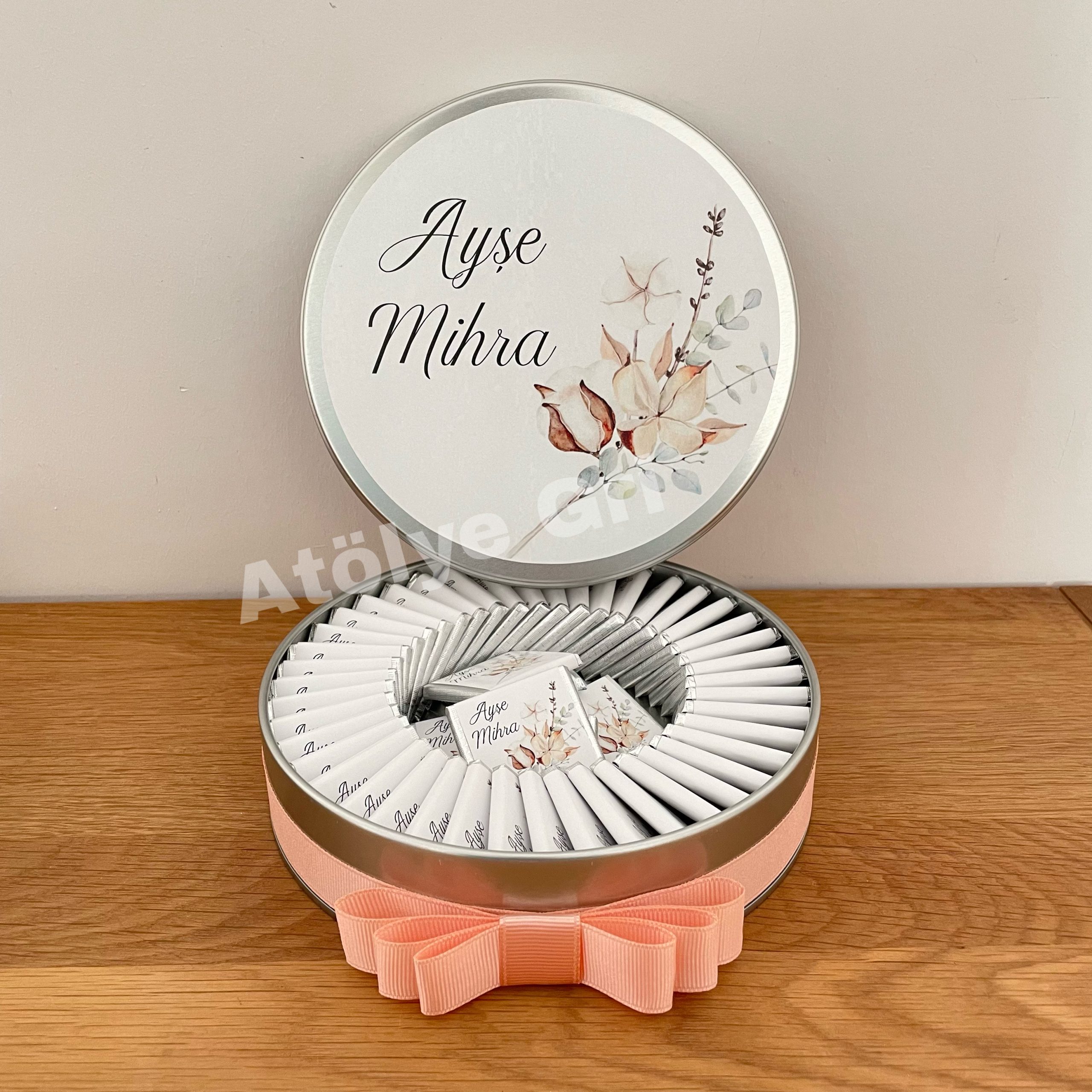 - 1 adet metal kişiselleştirilmiş yuvarlak kutu
